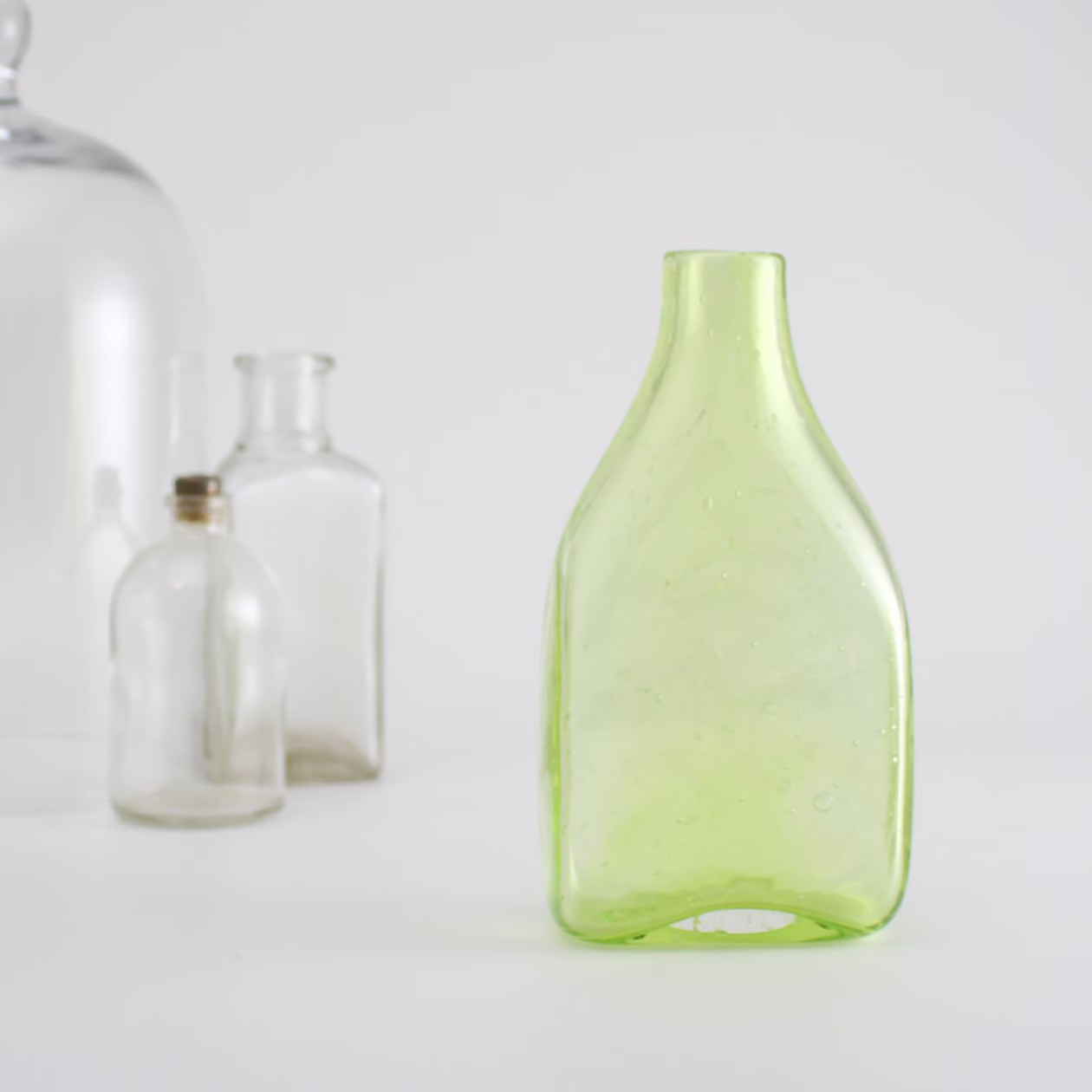Brighten up any room with a rectangle bottle shaped vase! Perfect for single stem blooms or a small bouquet. Looks beautiful as stand-alone décor or can be grouped with other complimentary pieces.